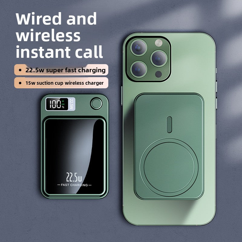 Keep your devices charged anytime with this Magnetic Charging Power Bank, designed for fast, wireless, and hassle-free charging. Featuring strong magnetic attachment, it securely connects to your smartphone for stable and efficient wireless charging without cables. Its compact and portable design makes it perfect for travel, office, and everyday use, while the high-capacity battery ensures reliable backup power whenever you need it. Equipped with fast charging technology, it delivers quick and consistent performance for compatible devices. Built with advanced safety features, it protects against overcharging, overheating, and short circuits for safe operation. Made from high-quality and durable materials, this magnetic power bank is the perfect solution for convenient and modern charging on the go.